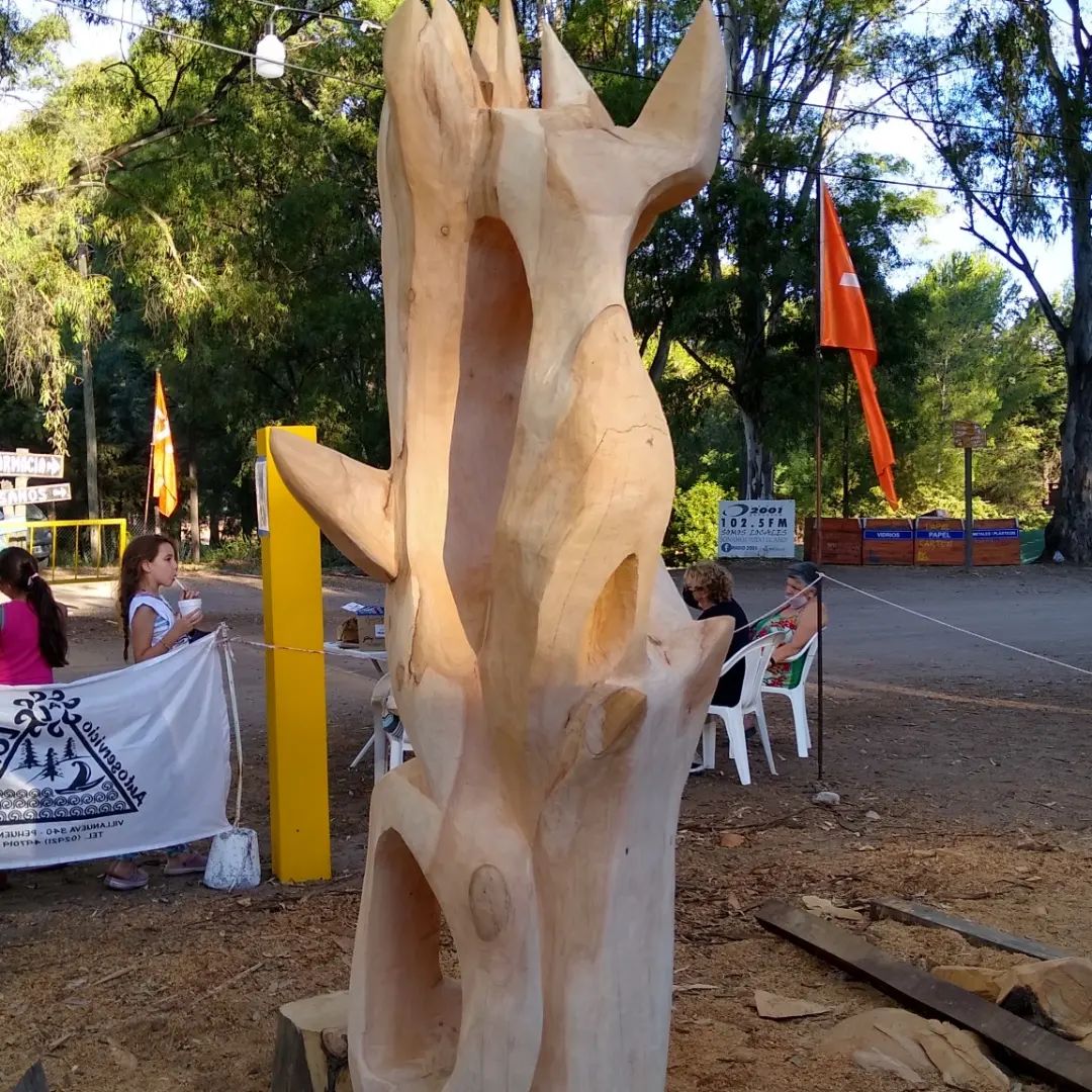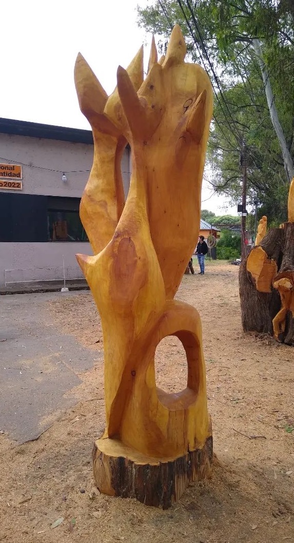 Gondeán fijo que su obra «tiene que ver con lo infinito, con esos seres que significan mucho para nosotros y que son infinitos en cuanto a lo emocional y que te llevan a plasmarlos en un tronco de grandes dimensiones. Las púas en mi obra son una característica y significan las defensas del ser humano, la protección. Esta es la primera vez que surgen de la misma madera, generalmente las ensamblo. Es una hermosa experiencia estar participando con gente de una calidad humana extraordinaria en esta tercera edición y estar representando a nuestra provincia junto a Gabi, es un placer».